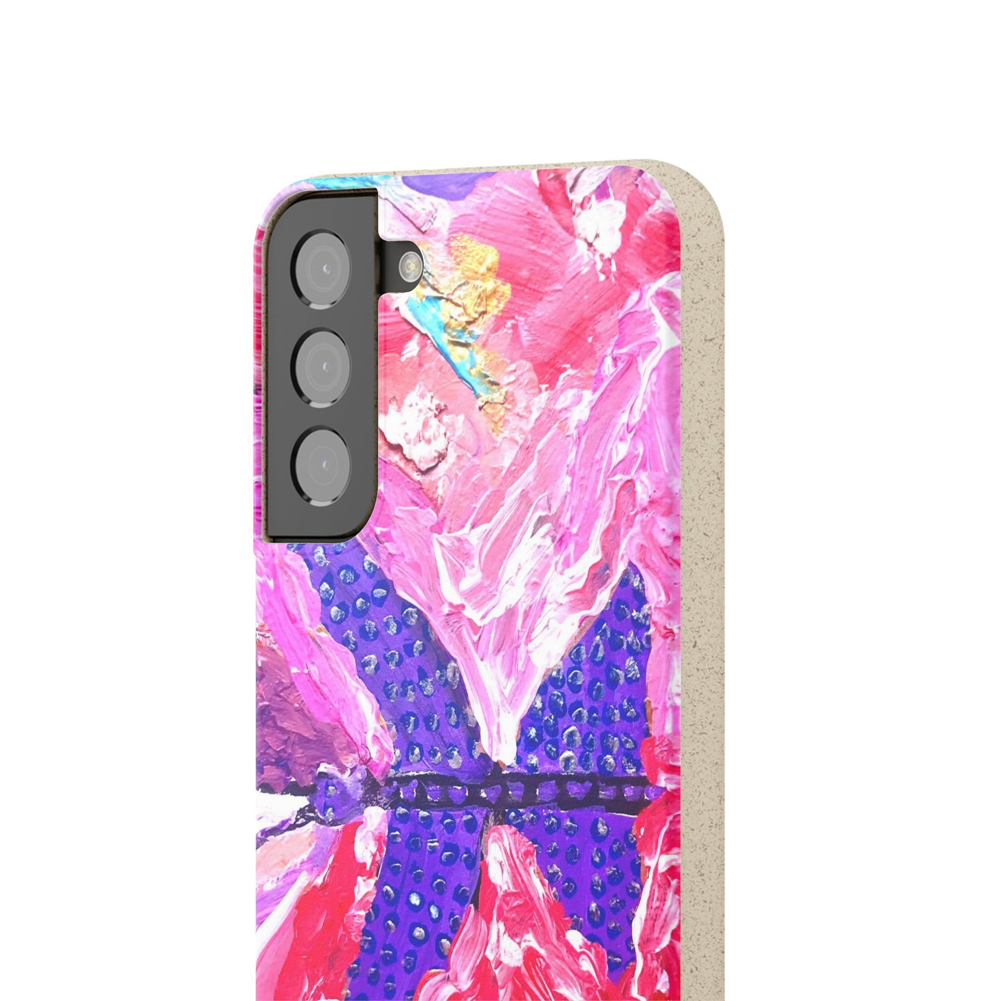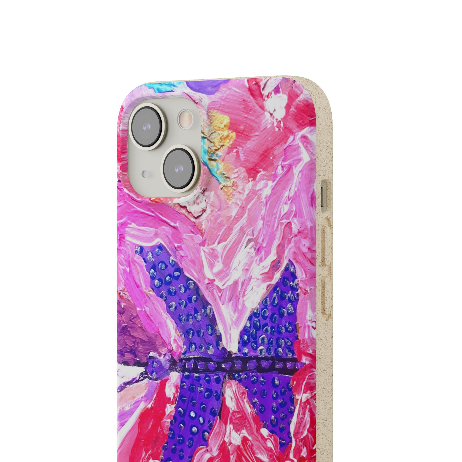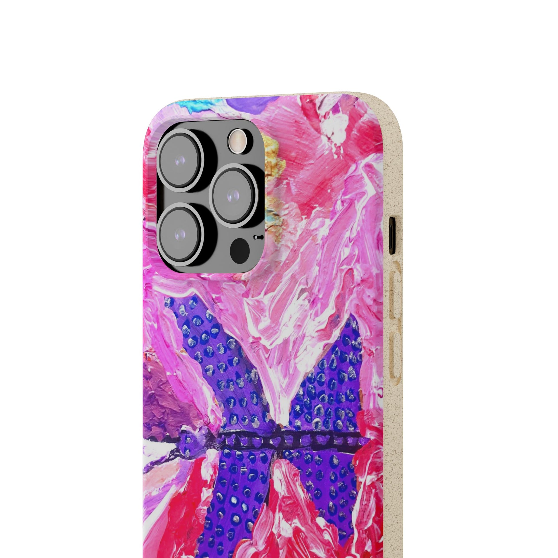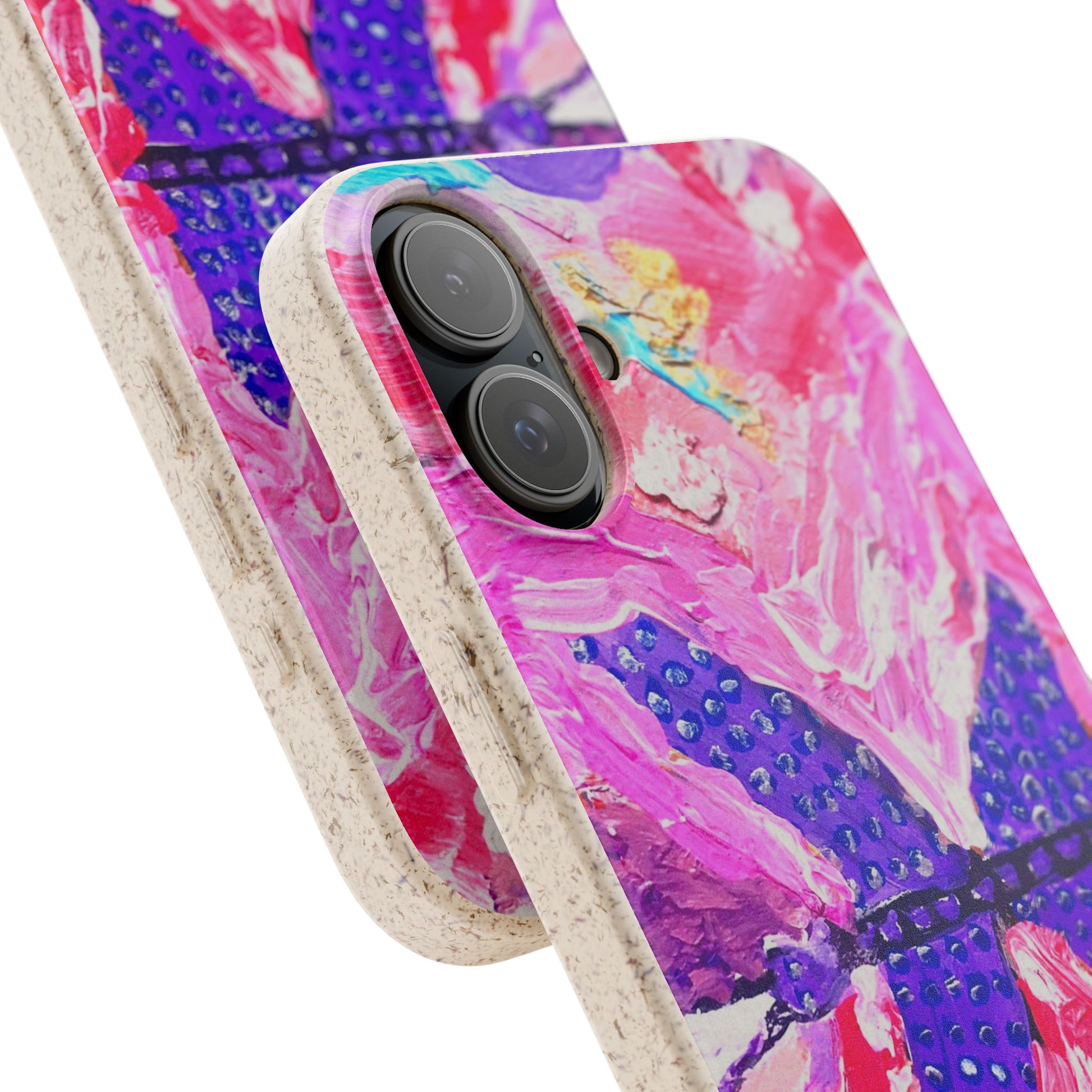 This biodegradable phone case brings bold, painterly color to your daily carry while keeping a low footprint. The matte, frosted finish softens a riot of magenta, coral and indigo brushstrokes into an artful composition that feels both spontaneous and intentional. Lightweight and flexible, the PLA-and-bamboo construction absorbs small impacts and will naturally break down over time — a small, responsible swap for anyone who cares about materials as much as style. Precise cutouts keep cameras and ports ready, and MagSafe® wireless charging works when placed flat on a charger. It may carry a faint natural scent from the bamboo fibers and can be packaged for gifting if you want to present it thoughtfully.