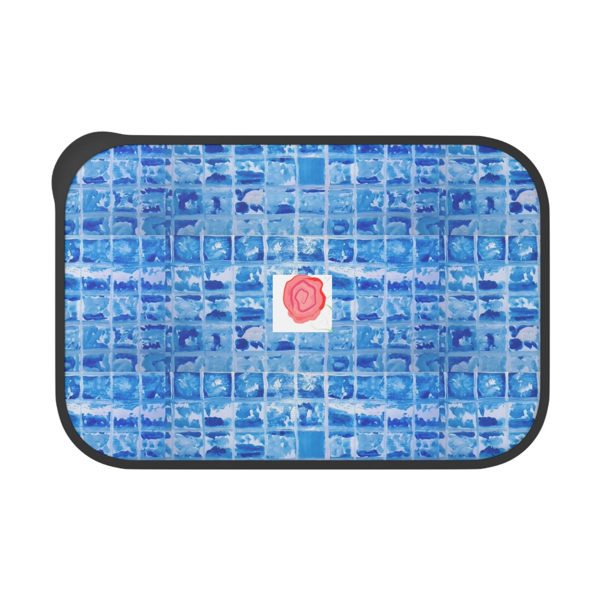 Bright, plant-based lunch made personal. This compact PLA bento carries your lunch in a lightweight, compostable box printed with a lively blue tiled pattern and a small rose motif at the center. The lid’s stipple-textured print keeps the art looking vivid while a secure rubber band and included PLA utensils make it easy to grab and go. Thoughtful for people who choose sustainable everyday items, it brings a splash of color to school, work, or weekend picnics while staying mindful of materials and care requirements.