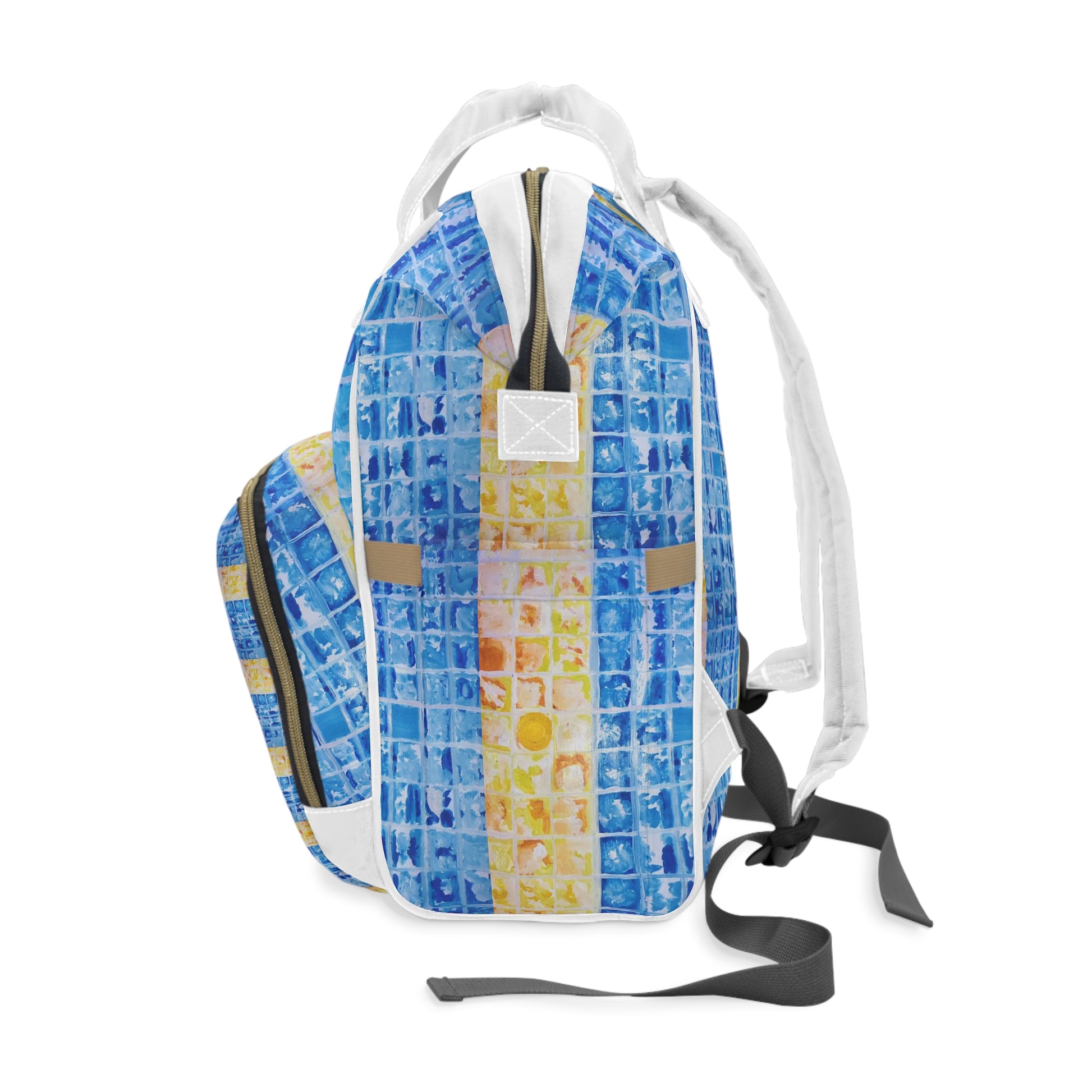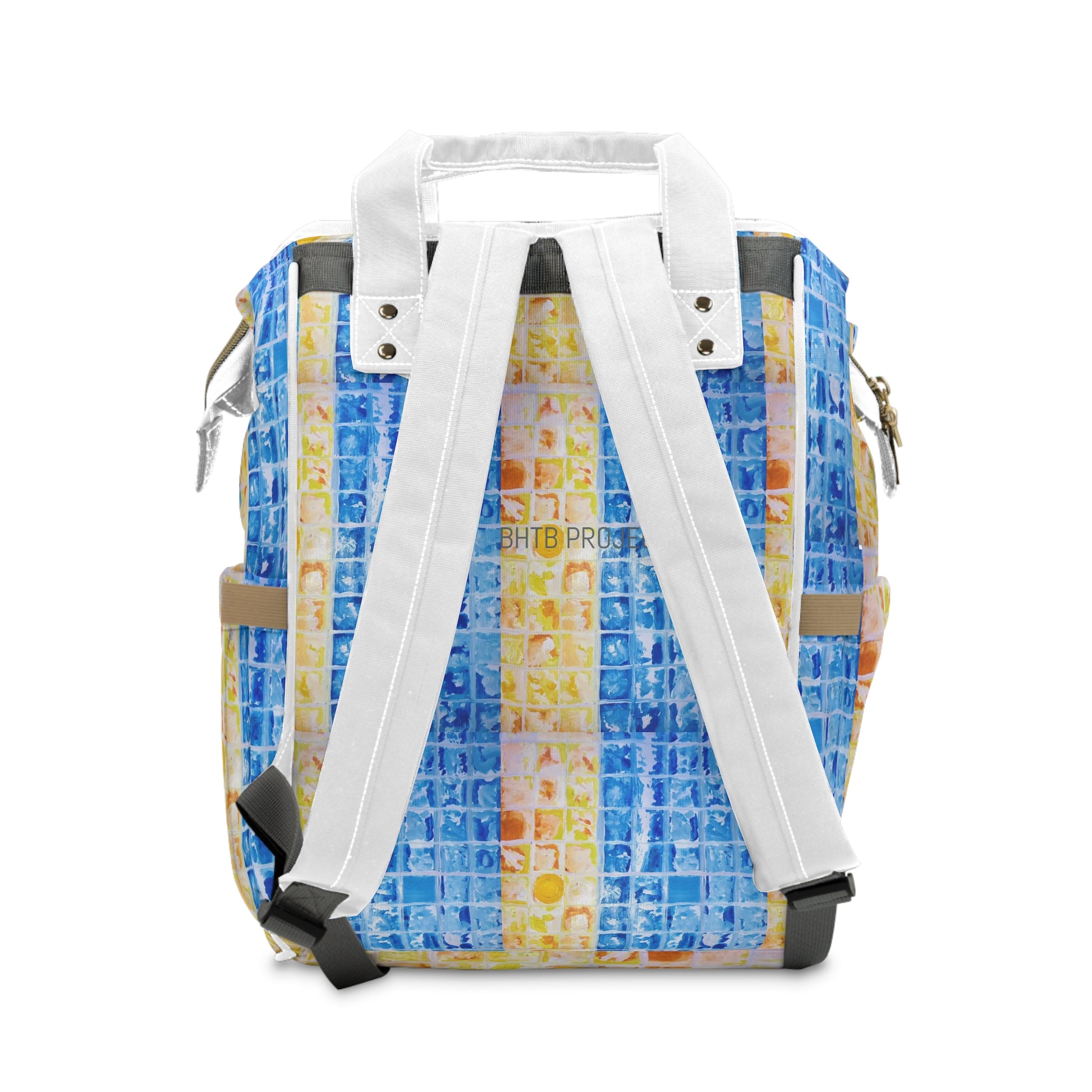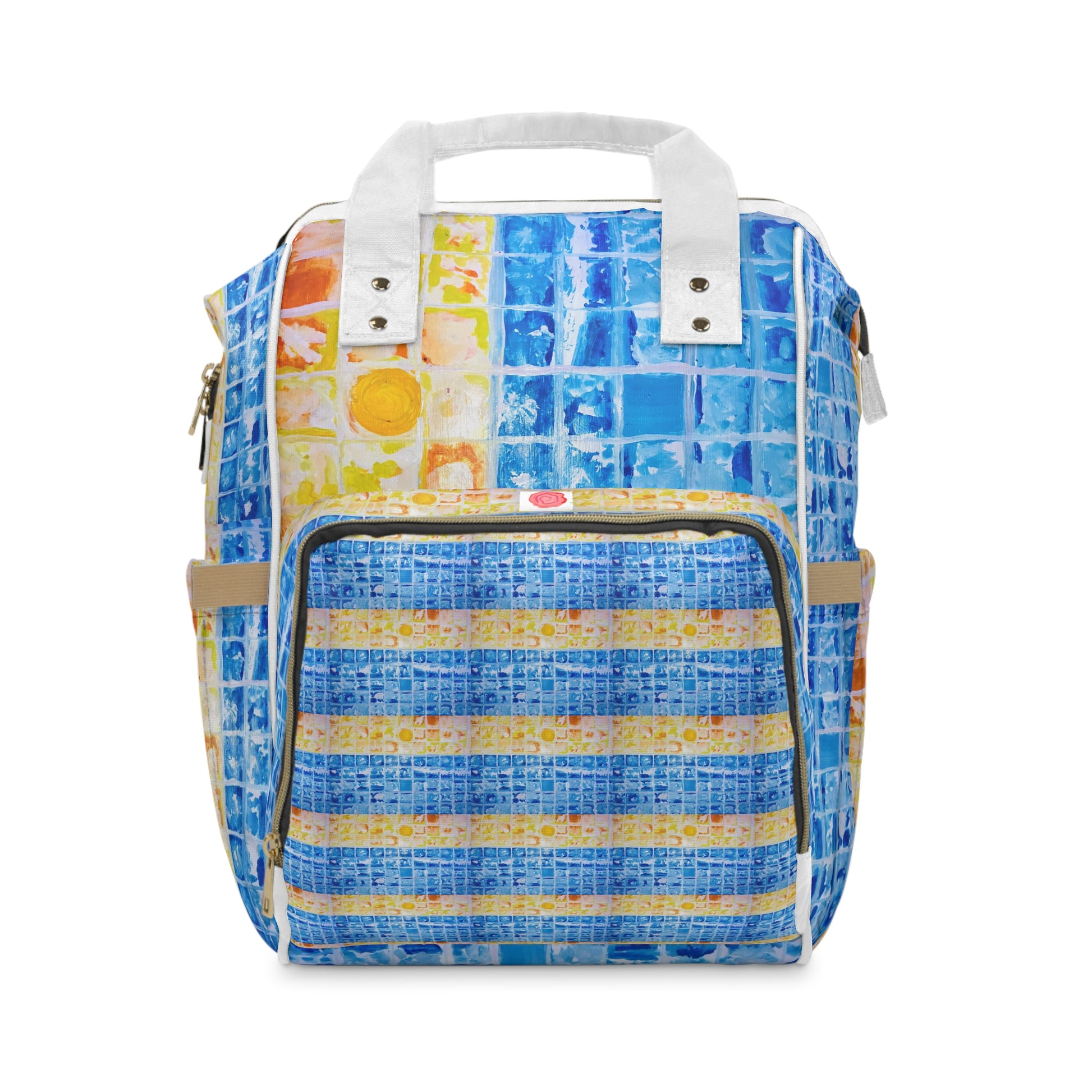 Stay organised and inspired with our Sunset (2) Diaper Backpack. Featuring original artwork that transforms an everyday essential into a wearable canvas, this design is inspired by a vivid dream of a woman and child by the ocean – where vibrant colours, boxed shapes, and fluid brushstrokes symbolise individuality, enlightenment, and the beauty of being present in the now.