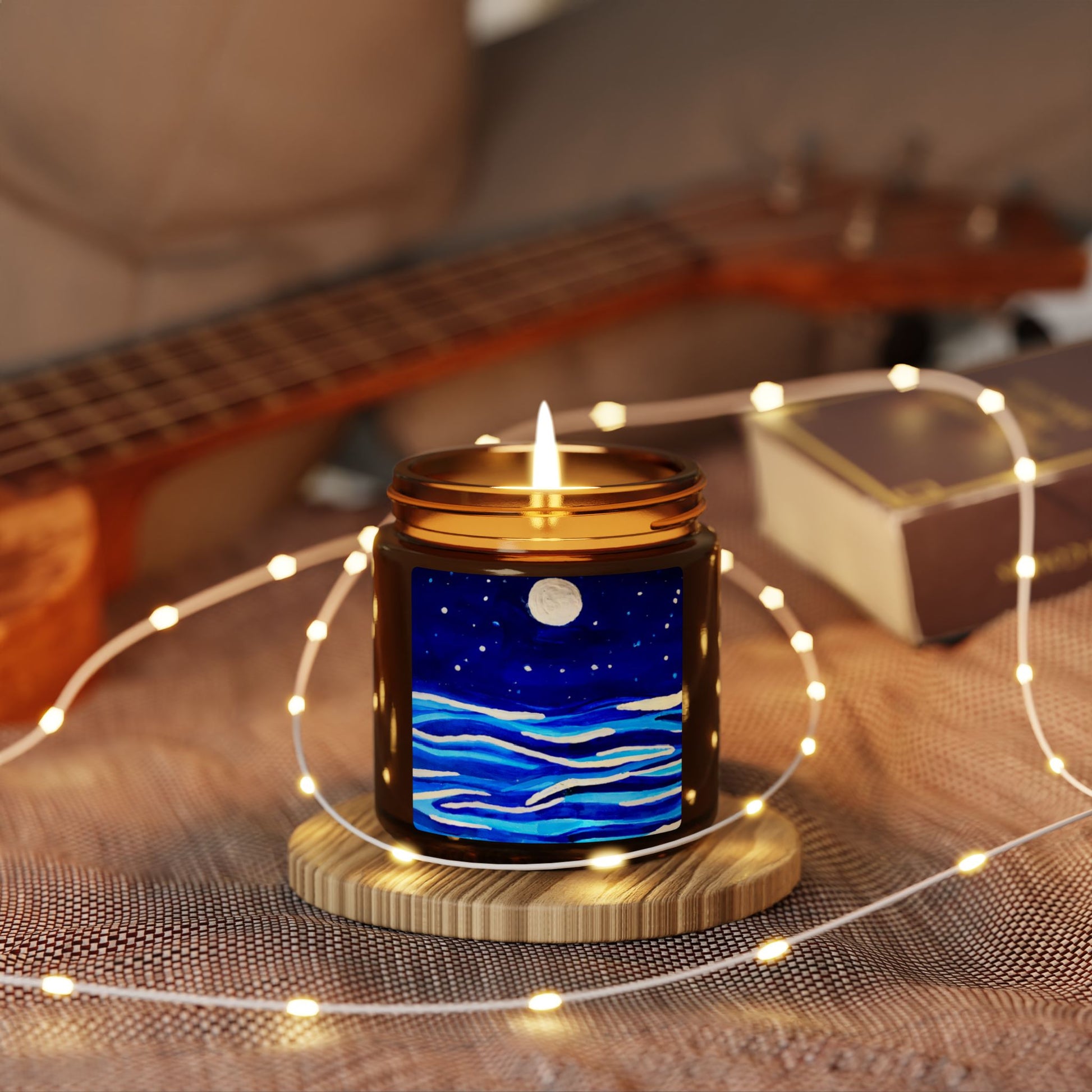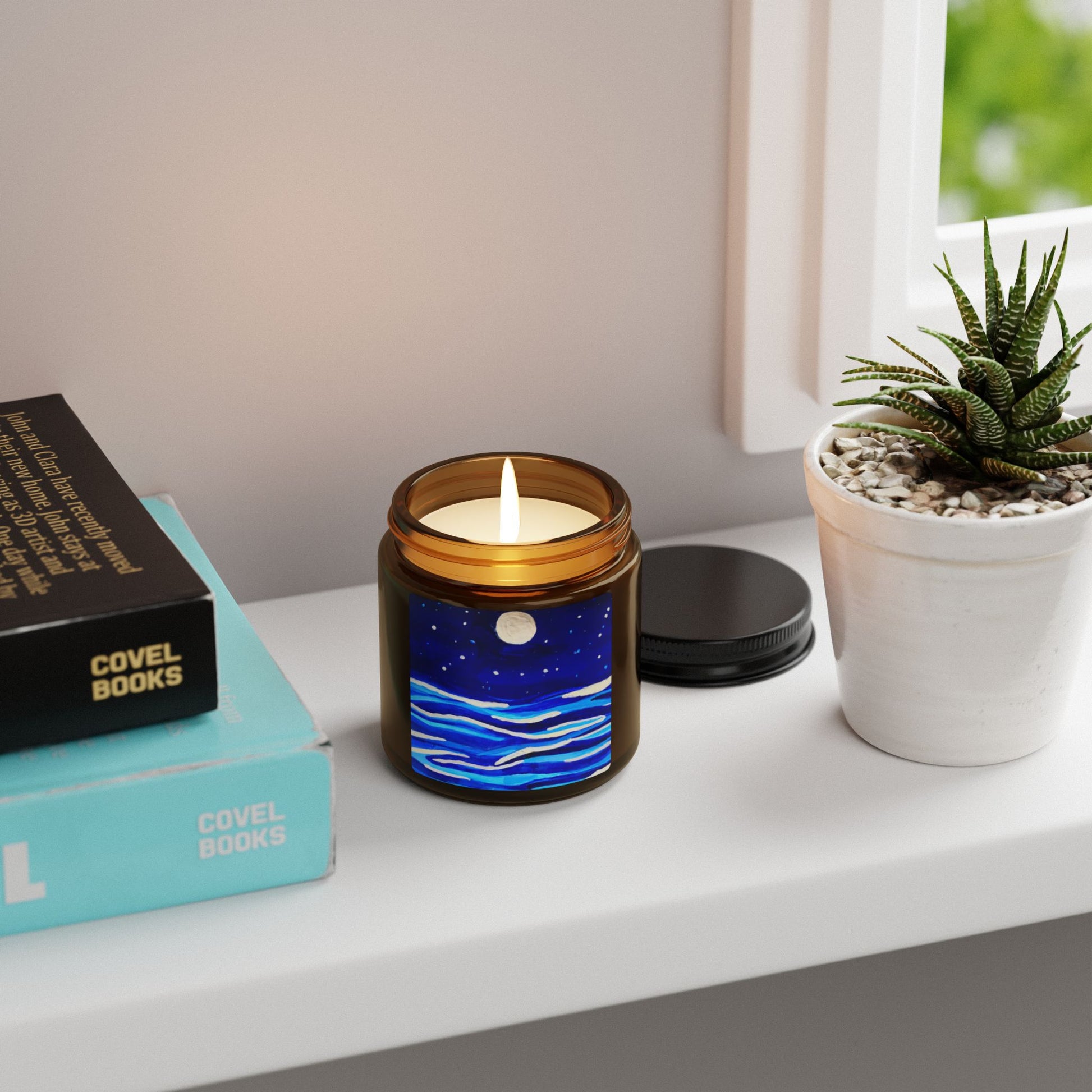 • Elegant amber glass jar for a cozy, atmospheric touch