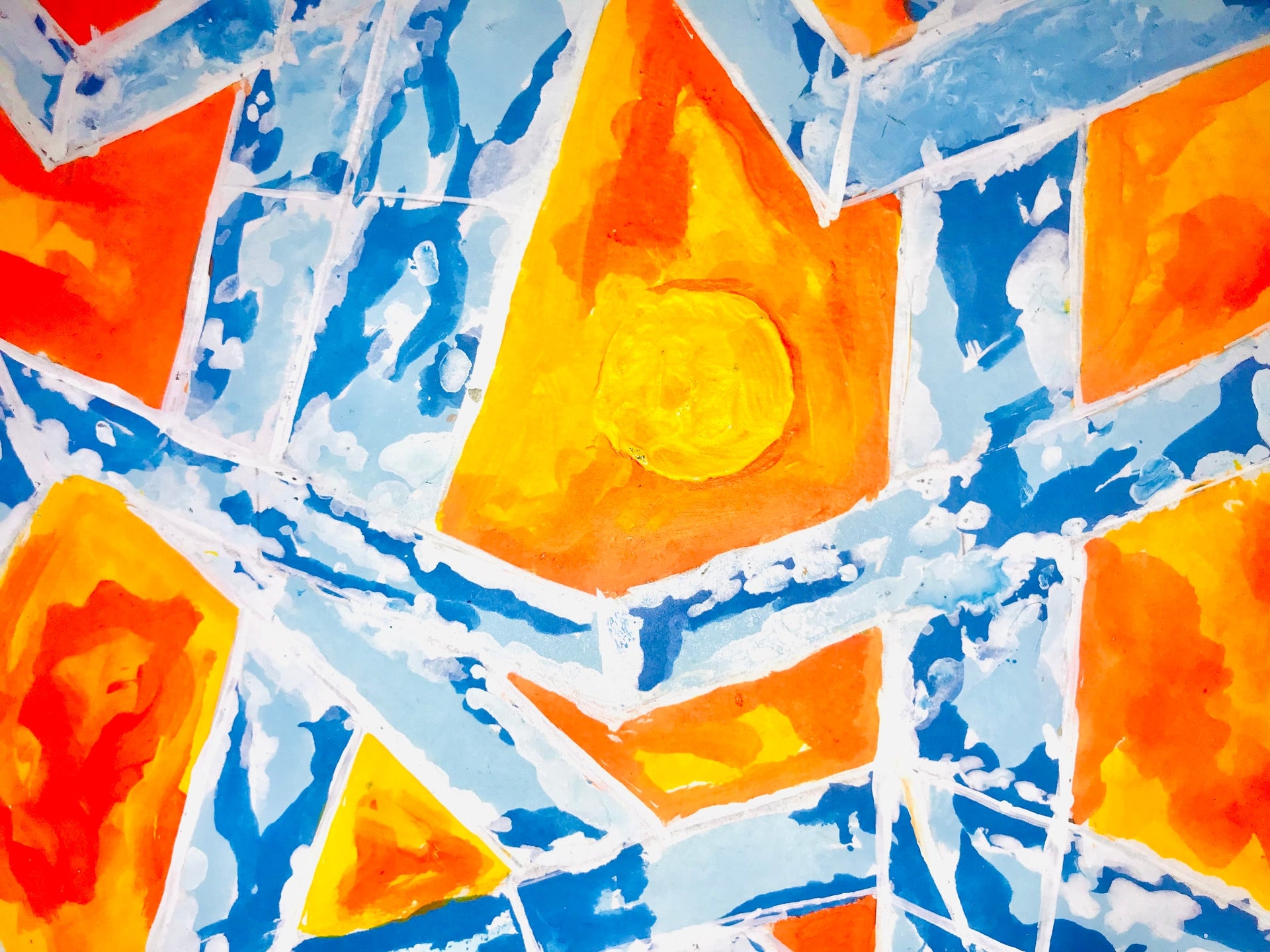 "I drew many paintings from the woman's vantage point and ultimately, the ocean turned into an abstract art. I took the colours and contained them carefully in boxes. The shapes represent individuality, though they look the same. The ocean, obviously, is about enlightenment. The boxes despite seeming intrusive are aligned with ocean's being." - Della